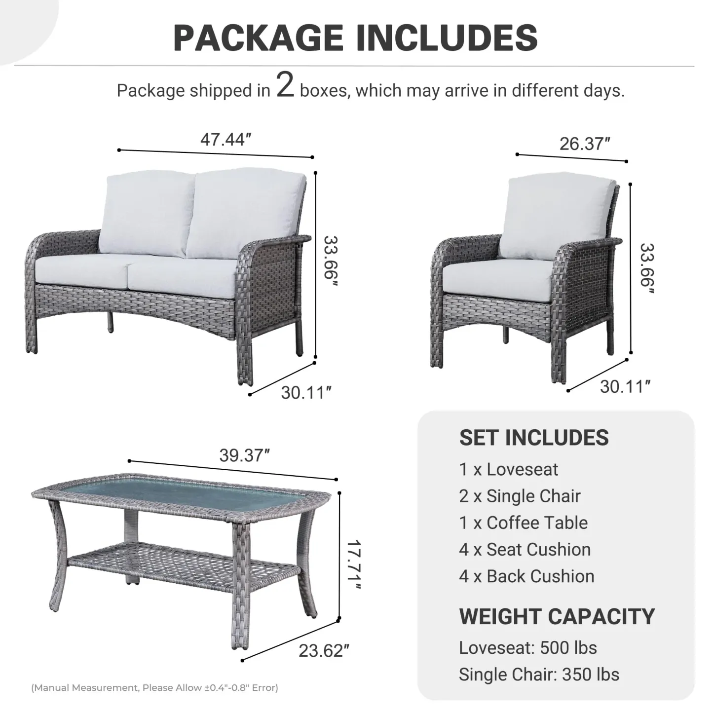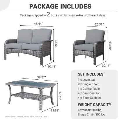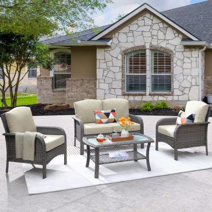 Ovios Patio Furniture Set New August 4 Piece High Back All Weather PE Wicker