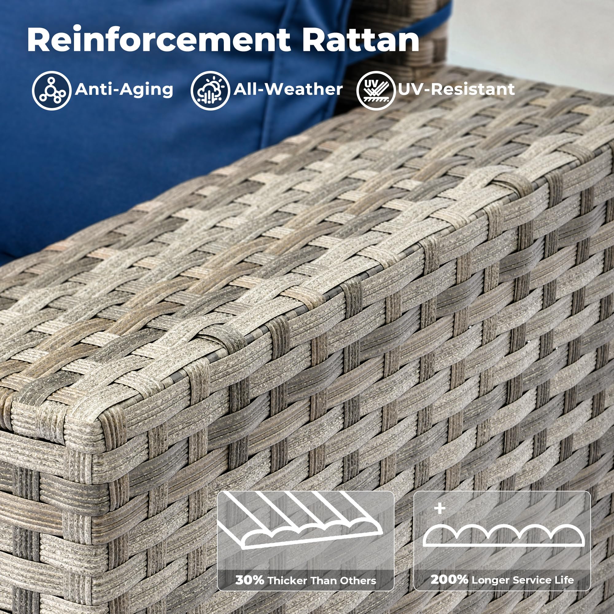 All-weather Wicker Rattan: Our outdoor sofa sets have very durable wicker rattan for all-weather use and a natural texture with good coloring. The high-quality patio seating made of powder coated steel frame ensures good strength and stability.
