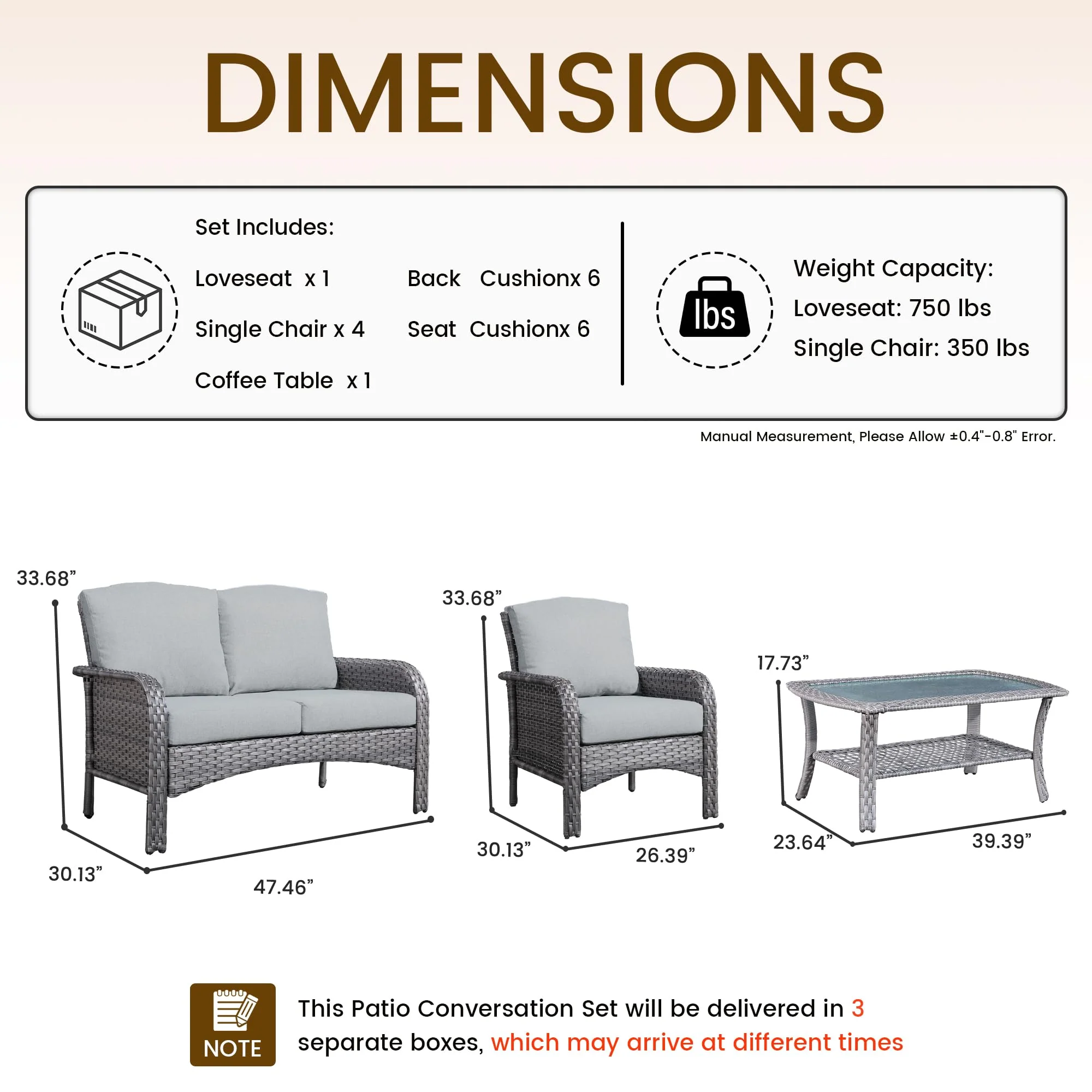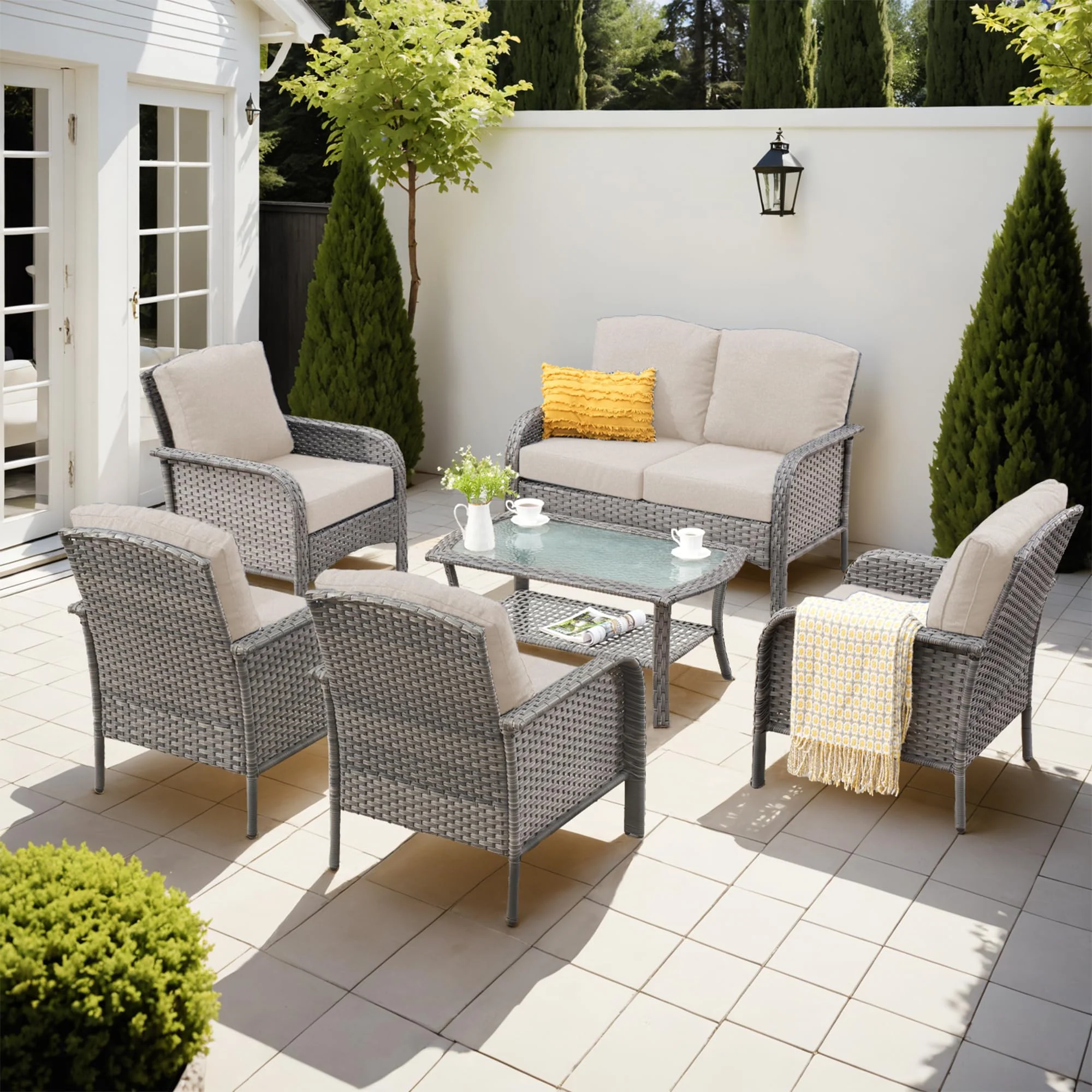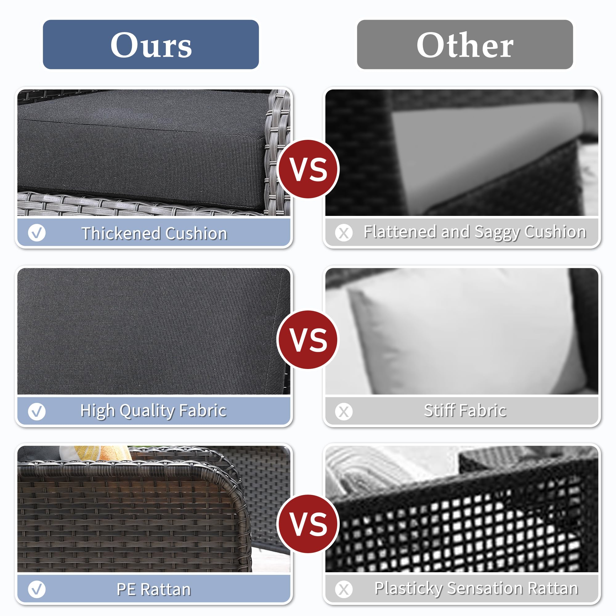 Easy Assembly & Warranty: Our patio set is easy to assemble with all the necessary hardware and tools included. Plus, we offer a manufacturer warranty for 365 days from the date of purchase and friendly customer service. If you have any questions or concerns, don't hesitate to reach out to us!